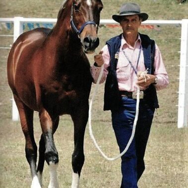Chip Chase Sadaqa is a legendary endurance champion and sire of first-rate endurance horses. His endurance record spans many years and includes a mountain of successful completions. He competed with his owner Peter Cole from 1981 to 1995, with over 4000 lifetime km during these years. He completed 47 rides and he had 14 First Place finishes; 33 top-five placings; 17 Best Condition Awards, 29 First Heavy Weight finishes. He won the 1983, 160km, Tom Quilty Gold Cup and placed second in 1987 with endurance legend, Ron Males, riding. He won the 1984 160-km QSC Cheerabah, and he was the Australian National Endurance Champion in 1983.