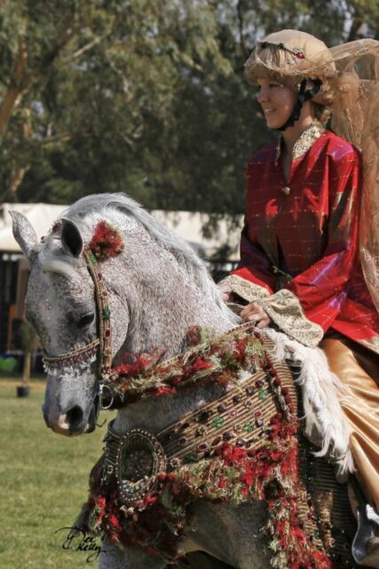He has represented the Arabian breed at many, many expos and public displays including numerous appearances at Equitana where he was always a crowd favourite. His forte always has been the “meet and greet” aspect. He just loves to interact with people. More so if they are patting him or have a carrot. He also loved to do the costume display, putting on an exciting show for his audience.